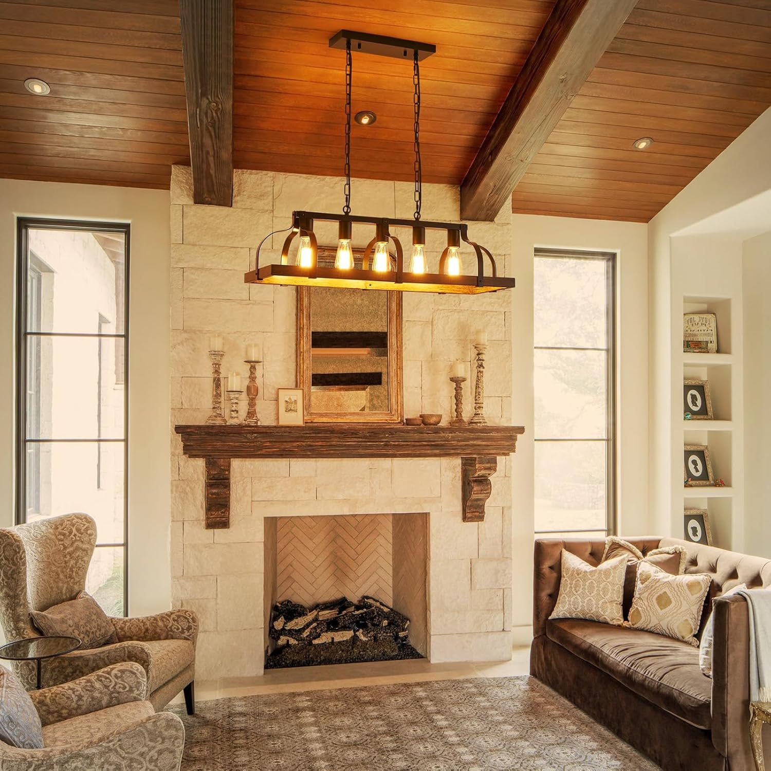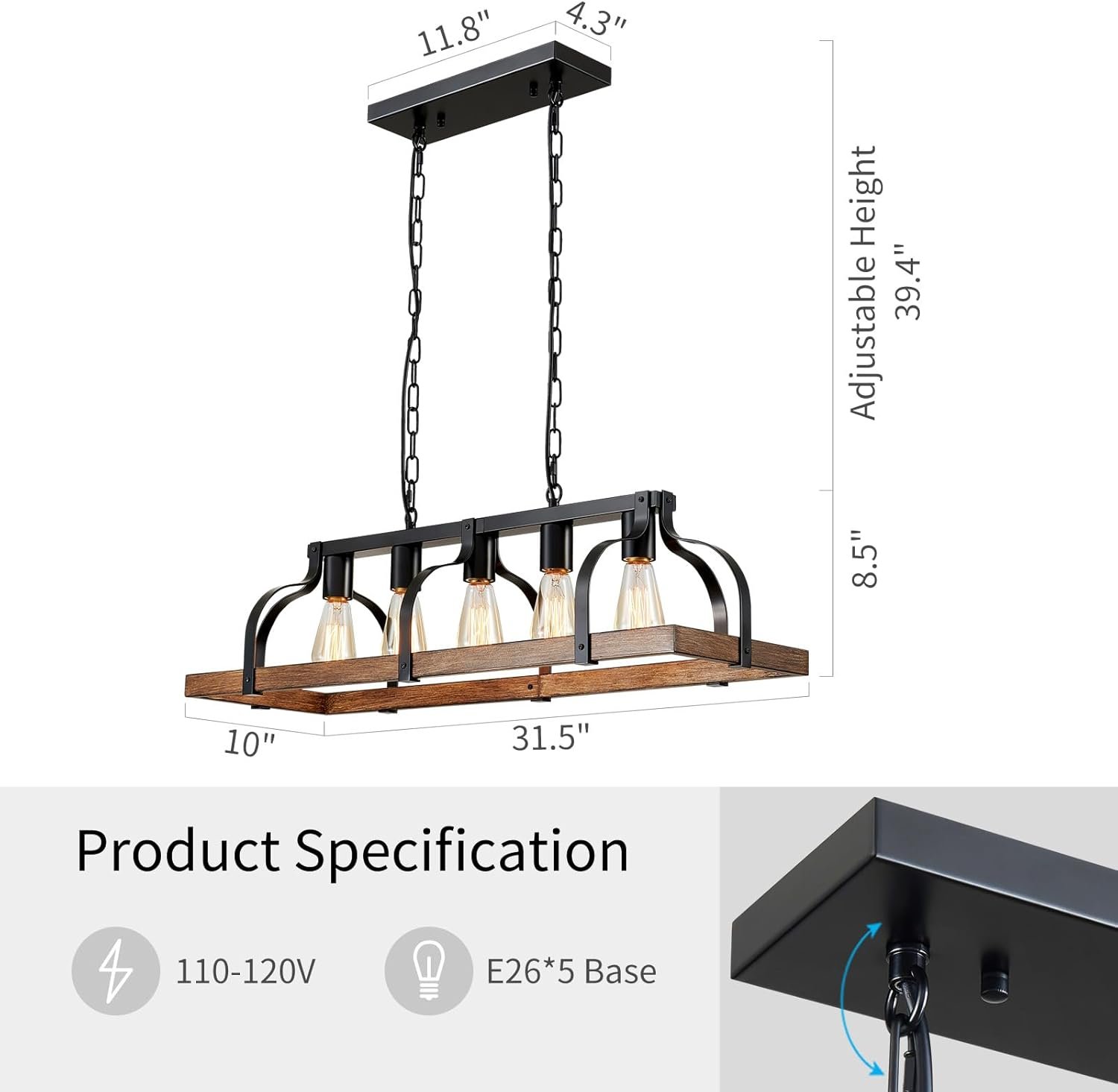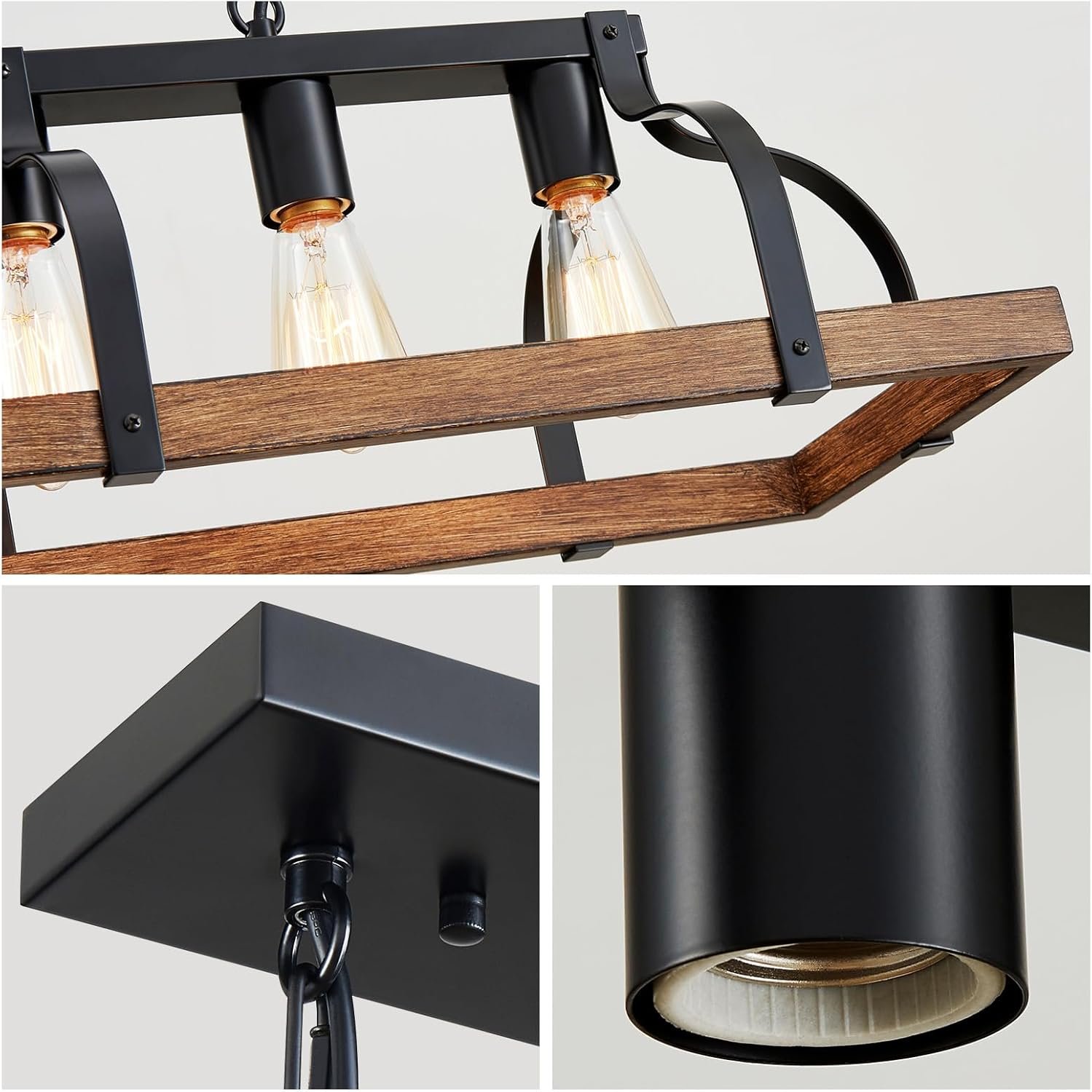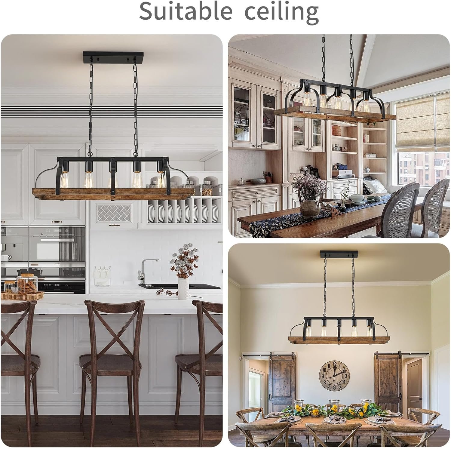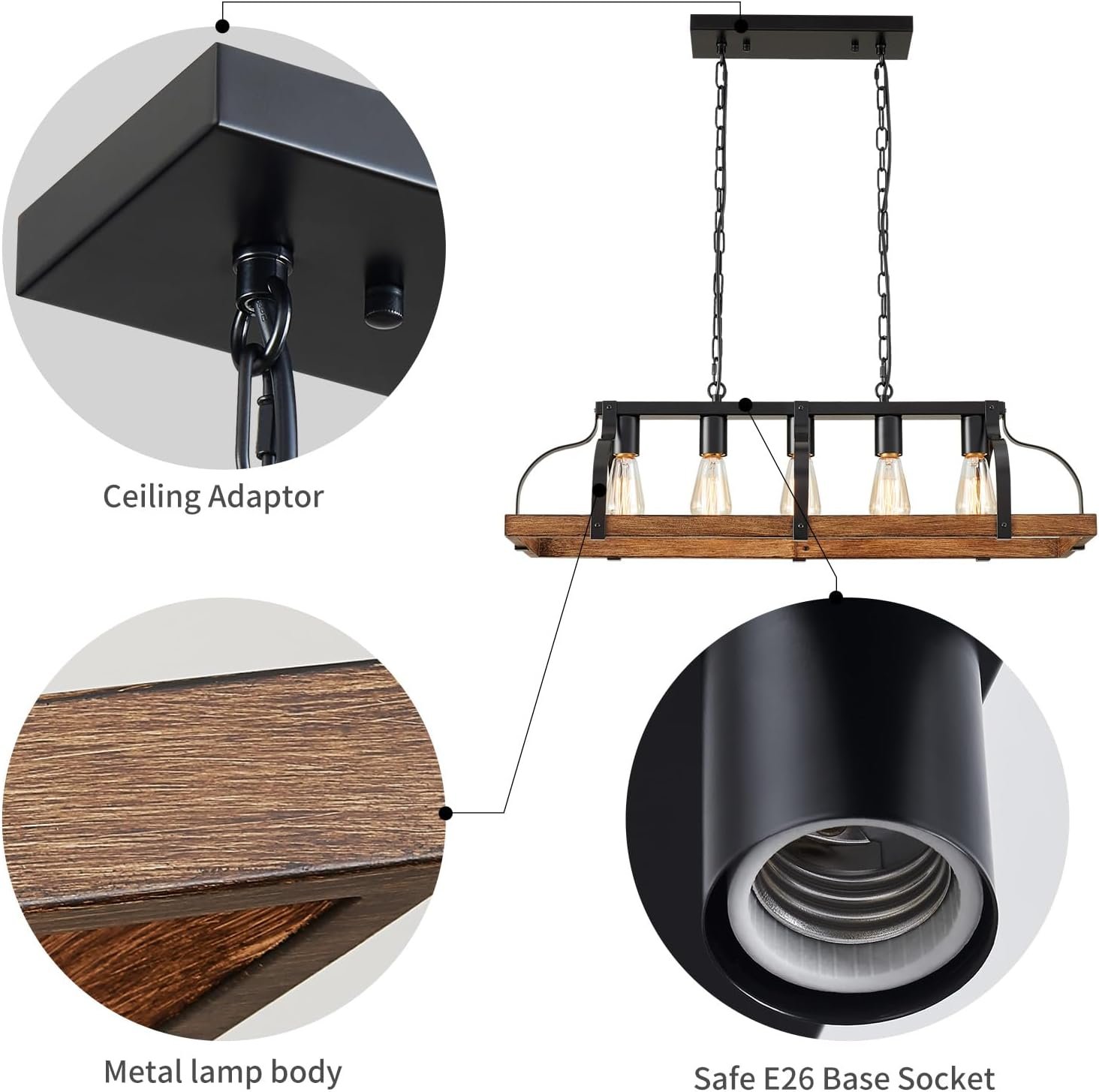 Modern Design: The chandelier with retro imitation wood grain finish gives your kitchen island and dining room a country feel and adds much light for industrial, cottage, or farmhouse homes.
